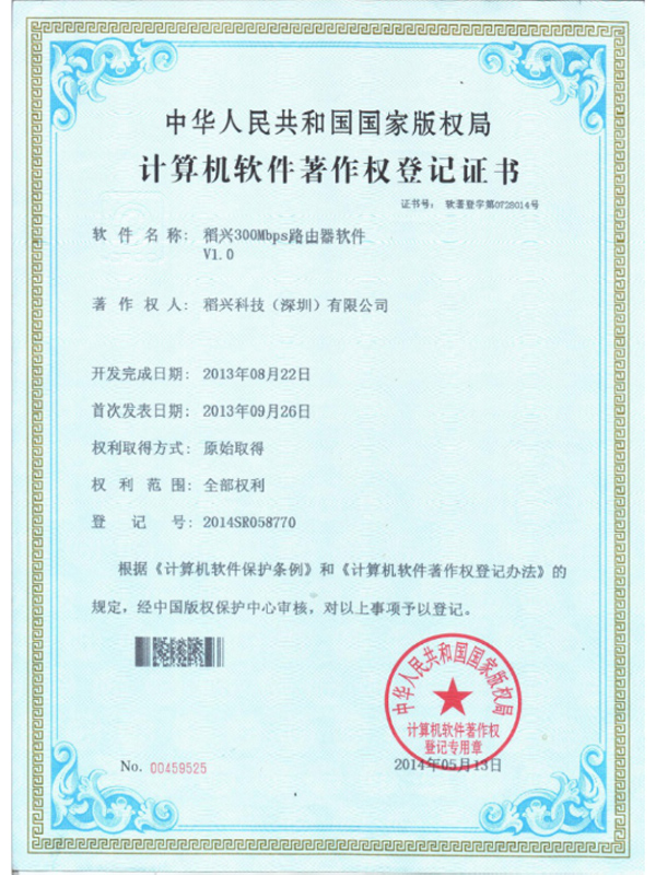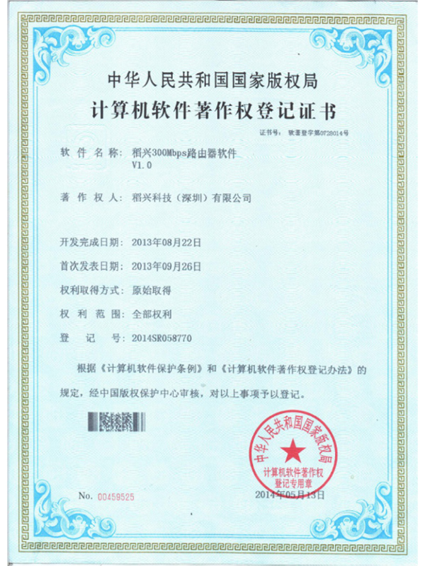 計(jì)算機(jī)軟件著作權(quán)登記證書